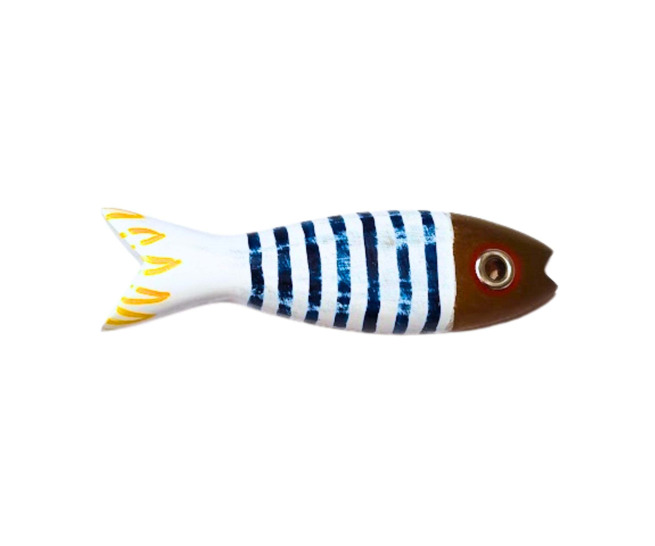 Imán decorativo de pez hecho a mano con materiales reciclados. Diseño náutico único y sostenible.